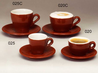 Italian CafT Style Cups. Our Italian cups feature thick body styling and original brown Moka color. Available in two shapes and sizes. Espresso cup holds 2.5oz each and cappuccino cups hold 6.5oz. Sold in sets of 6 (espresso) or 4 (cappuccino).