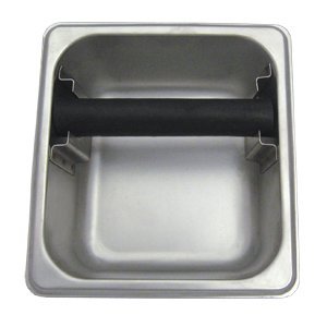 Rugged Stainless Steel design with removable metal reinforced knock bars. Ideal for espresso related applications. Size: 6" Deep. Type: Knock Box. Dimensions: 7" x 6-1/2" x 4" (18 x 16.5 x 15.2 cm). Sold in Units of: 1. Case Unit: 12.